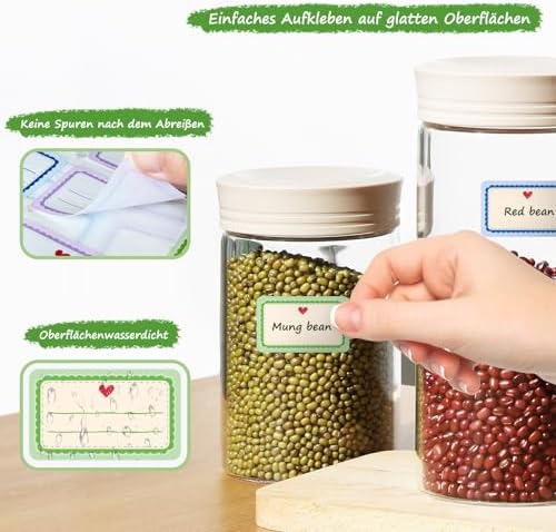 - Vielseitig einsetzbar: Ideal als Marmeladenetiketten, Geschenkaufkleber oder zum Beschriften von Gefrierdosen.