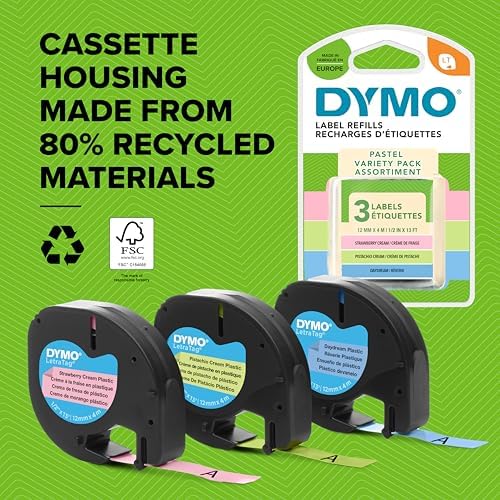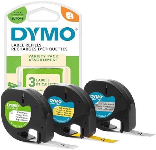 DYMO LetraTag Etikettenband 12mm x 4m | Selbstklebend für kreative Beschriftungen Zuhause | 3 KassettenDYMO LetraTag Etikettenband 12mm x 4m | Selbstklebend für kreative Beschriftungen Zuhause | 3 Kassetten