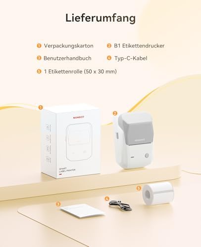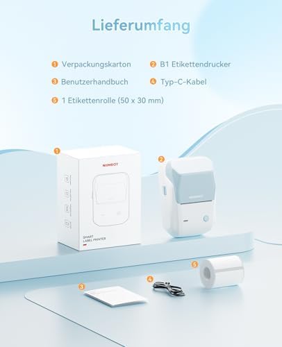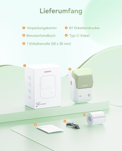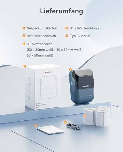 Das NIIMBOT B1 Labeller Kit bietet alles, was Sie für ein effizientes Etikettiersystem benötigen. Im Lieferumfang enthalten sind: