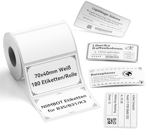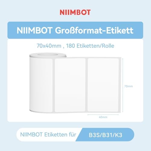 NIIMBOT Etiketten 70 x 40mm – 180 selbstklebende Thermo-Etiketten für Büro, Einzelhandel & Supermärkte
