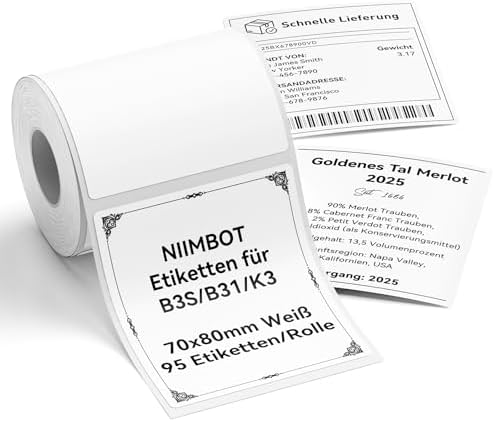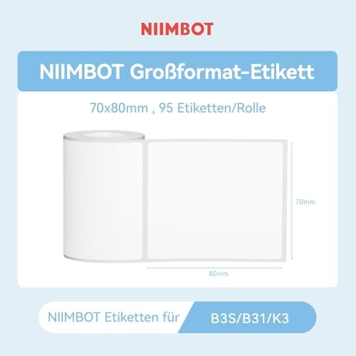 - Kompatibilität: Speziell entwickelt für die NIIMBOT B31, B3S und K3 tragbaren Bluetooth-Etikettendrucker für müheloses Drucken.