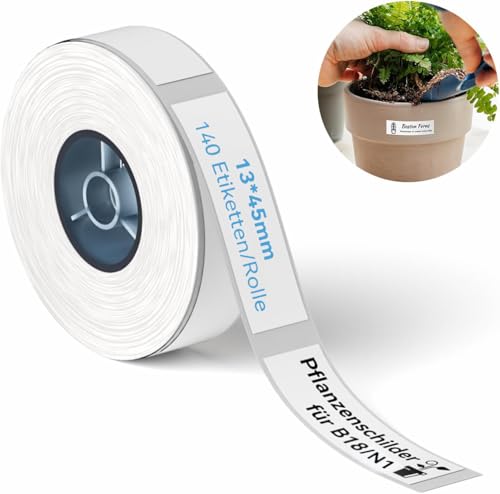 Die hochwertigen Gartenetiketten sind speziell für den NIIMBOT B18 Etikettendrucker entwickelt. Jede Rolle beinhaltet 140 Thermotransferetiketten mit den Maßen 13mm x 45mm. Diese werden zur einfachen Kennzeichnung von Pflanzen und Topfgefäßen verwendet und sind ideal für alle Gartenliebhaber.