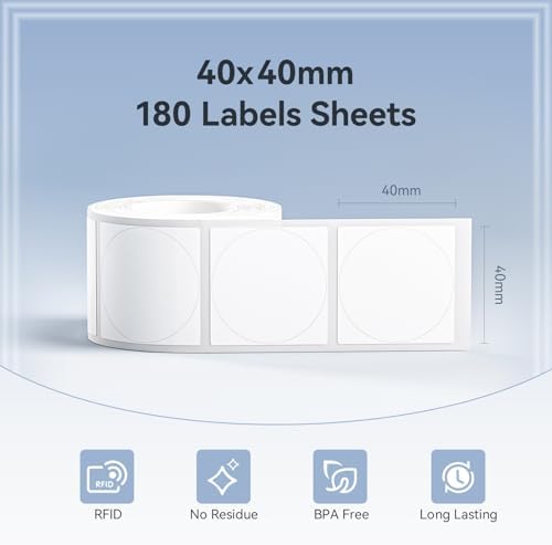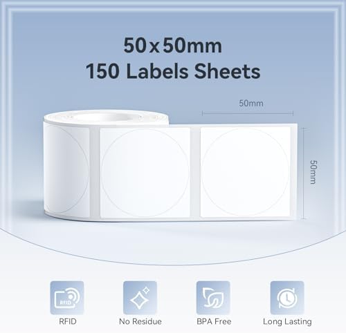 NIIMBOT Runde Etiketten für B21/B1/B3S Drucker – Thermoaufkleber 2″X2″ (50x50mm) für effizientes Labeling zu Hause oder